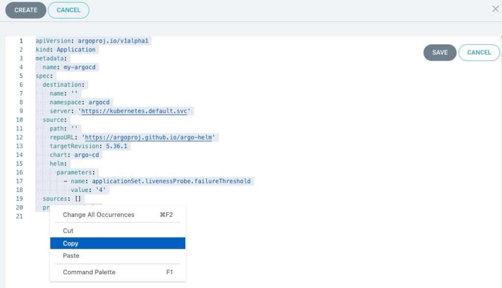 Copy the value and past it in your file in a local machine. I named it my-argocd.yaml. This is exactly the definition file for ArgoCD!