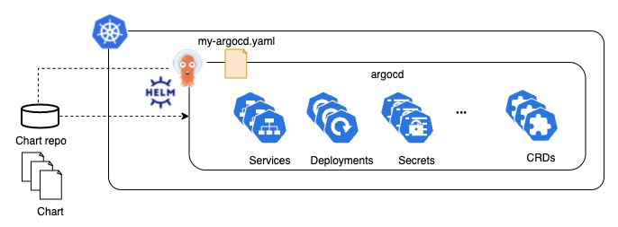 In my previous post, I explained how to install ArgoCD via Helm. Now, let’s discuss how to operate it. How can we update ArgoCD? How do we change its configuration? Updating ArgoCD can be done through the helm upgrade command, which follows an imperative approach. However, if you’re a DevOps engineer or an infrastructure engineer, you might prefer managing it declaratively. In this article, I will share how to manage ArgoCD declaratively using ArgoCD. 🐙
