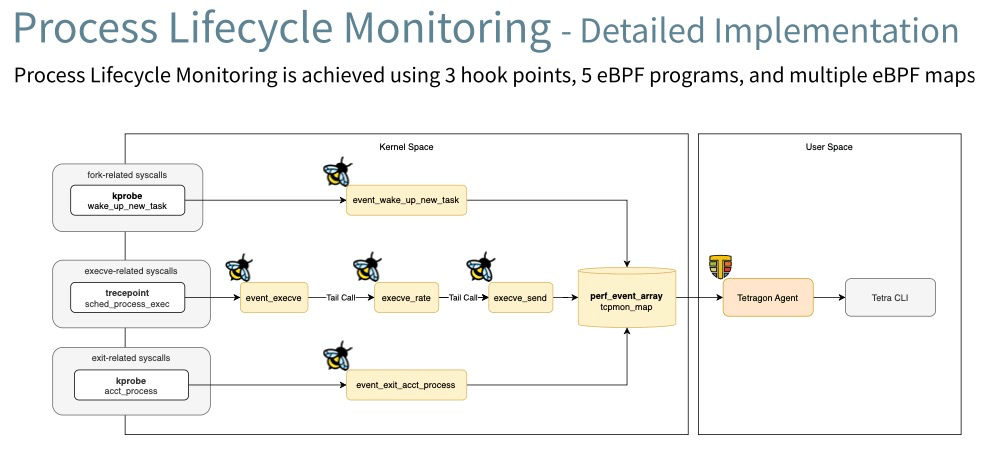 A significant portion of my talk was dedicated to explaining the internal workings of Tetragon’s monitoring mechanism.
